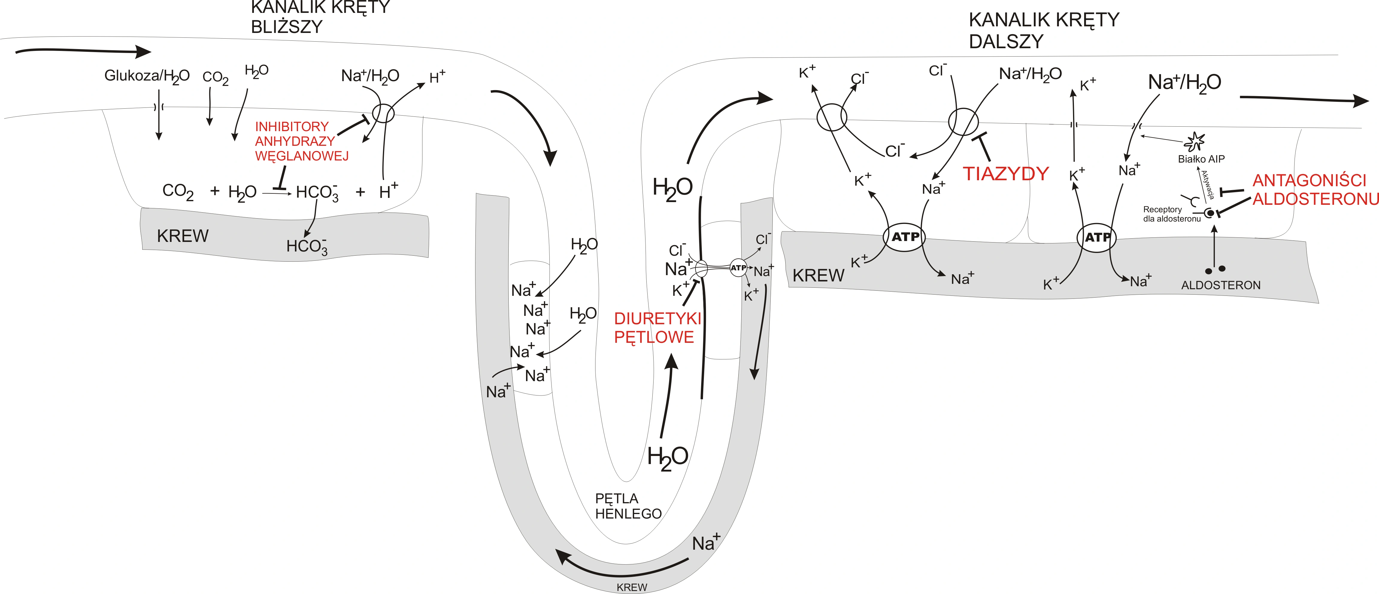 此機轉圖說明了整個利尿劑的作用機轉